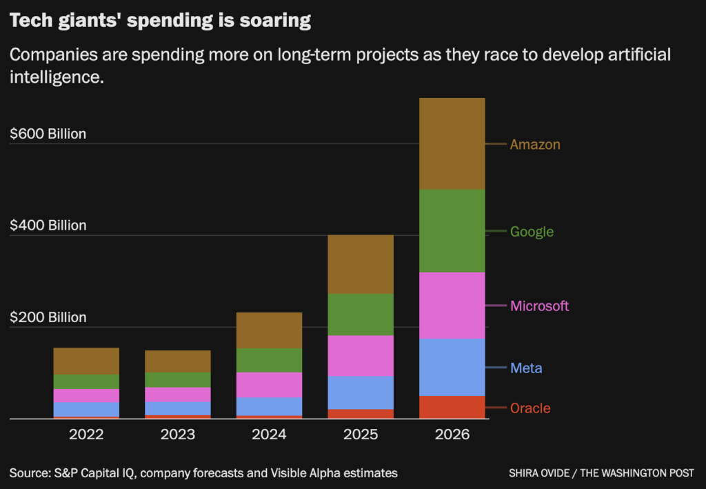 A new economic indicator has captivated Silicon Valley, Wall Street and Washington. Technology companies’ massive spending on artificial intelligence accounted for half or more of U.S. growth last year, some economists calculated, effectively propping up an otherwise anemic economy.